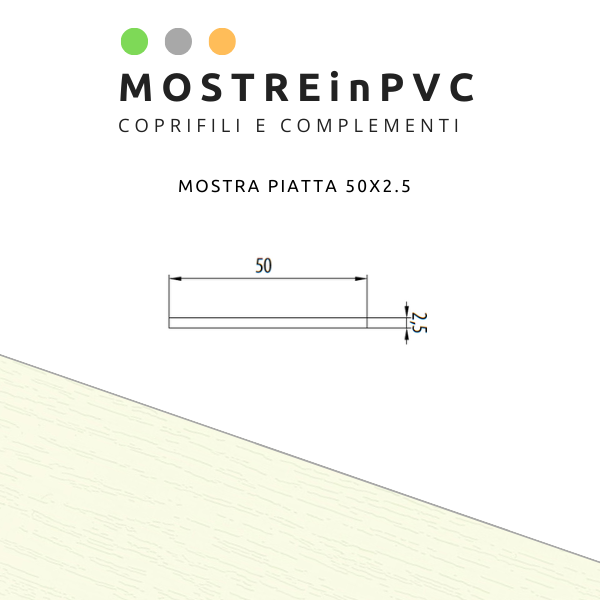 Mostra piatta in PVC di larghezza 50mm e spessore 2.5mm.