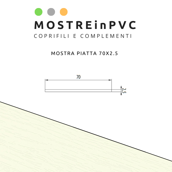 Mostra piatta in PVC di larghezza 70mm e spessore 2.5mm.